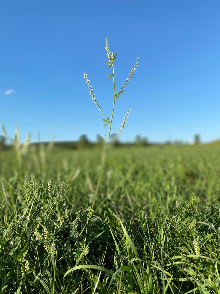 White sweetclover. Getting it’s name from clover-looking leaves and clear white flowers. It’s considered a valuable honey plant for it’s nectar, so definitely not the random weed I assumed when paused to look.