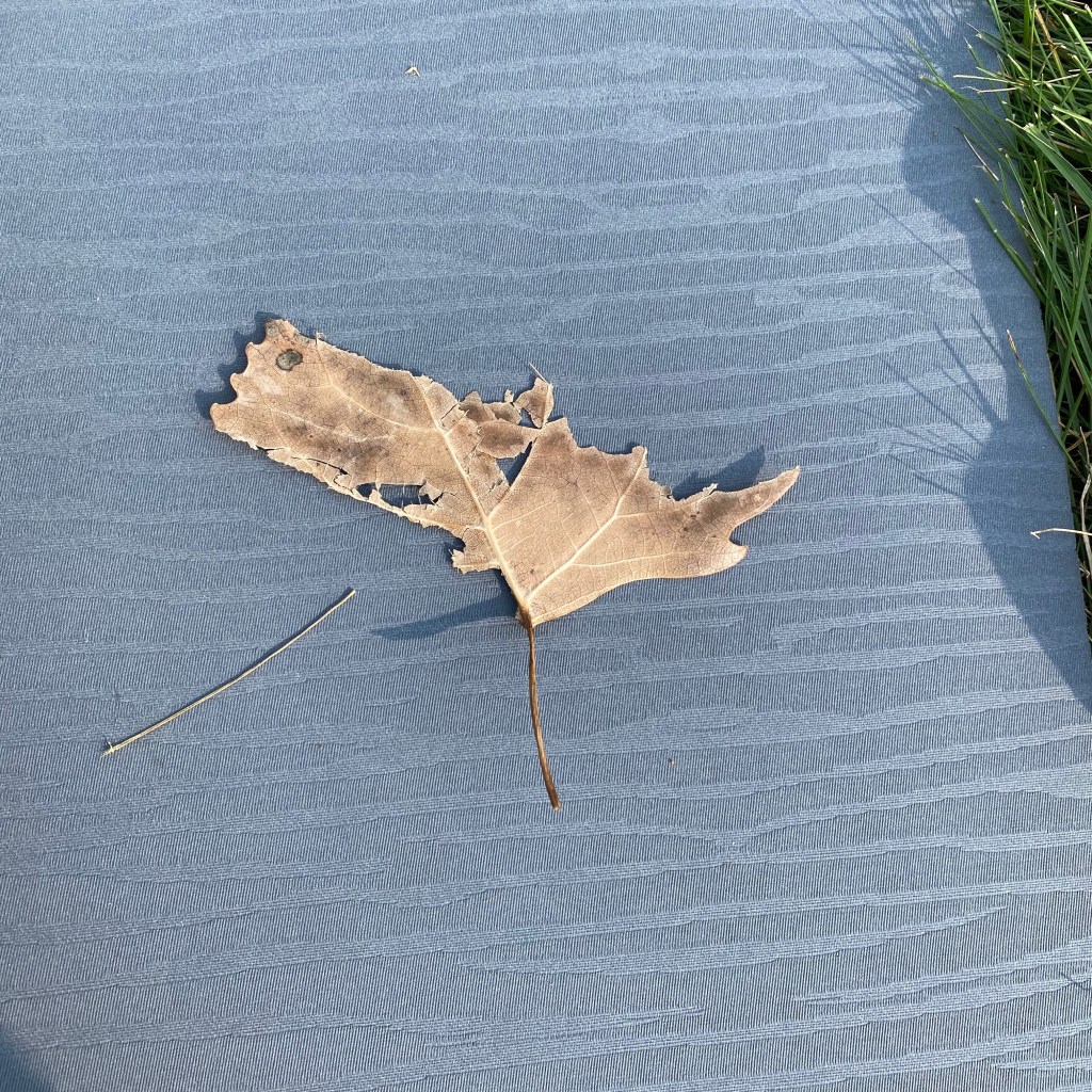 An “imperfect” leaf joined me on my mat. He wanted to get a view of the buffalo’s backside also. He was a quiet little fella, but seemed to enjoy his yoga class too. Enough of him was there to identify that he is a big-tooth aspen. That name comes from the appearance of coarse teeth on the edges of the leaves.
