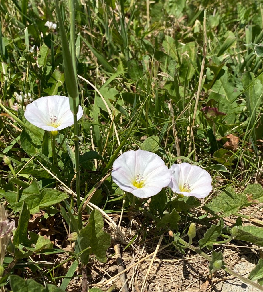 Field bindweed flanked the road on both sides as a slowly jogged by. The trumpet-shaped flowers were celebrating me getting out in the sun.