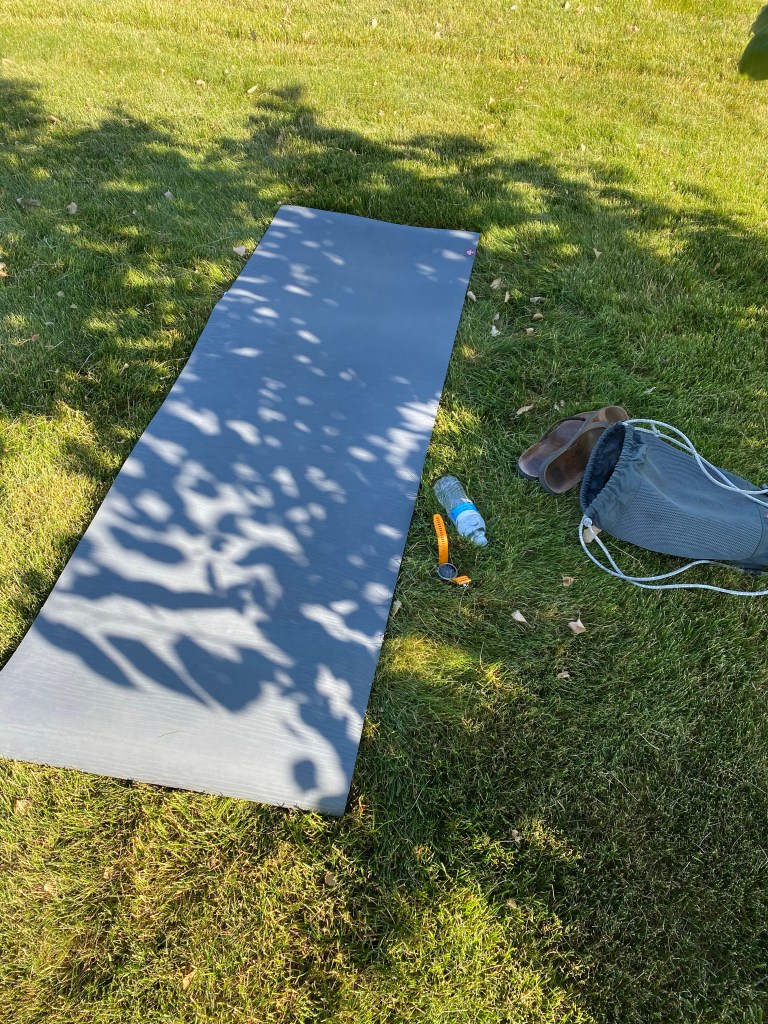 A gorgeous morning for outdoor yoga. I counted 35 others who made the decision to come out and enjoy. I found a little patch of shade to park myself. Walking around outdoors barefoot is such a treat. Not sure why it doesn’t happen more often as there isn’t a great excuse for me not to.